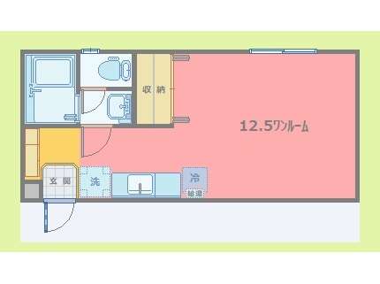 | 詳細間取 | 1R (洋12.5帖×1) | ||