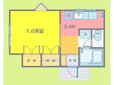 | 詳細間取 | 1K (洋7帖×1、キッチン3.7帖) | ||